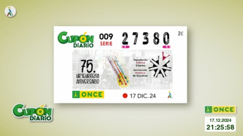 El sorteo del Cupón Diario de la ONCE correspondiente al martes 17 de diciembre de 2024 tuvo como número premiado el 27380, con la serie correspondiente al 009. Todos los resultados al completo, tanto de hoy como de fechas anteriores, los podrás ver en la web de ESTADIO Deportivo, siendo recomendable su comprobación también en los canales oficiales de la ONCE.