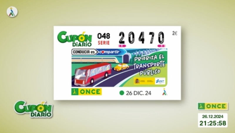 El sorteo del Cupón Diario de la ONCE correspondiente al jueves 26 de diciembre de 2024 tuvo como número premiado el 20470, con la serie correspondiente al 048. Todos los resultados al completo, tanto de hoy como de fechas anteriores, los podrás ver en la web de ESTADIO Deportivo, siendo recomendable su comprobación también en los canales oficiales de la ONCE.