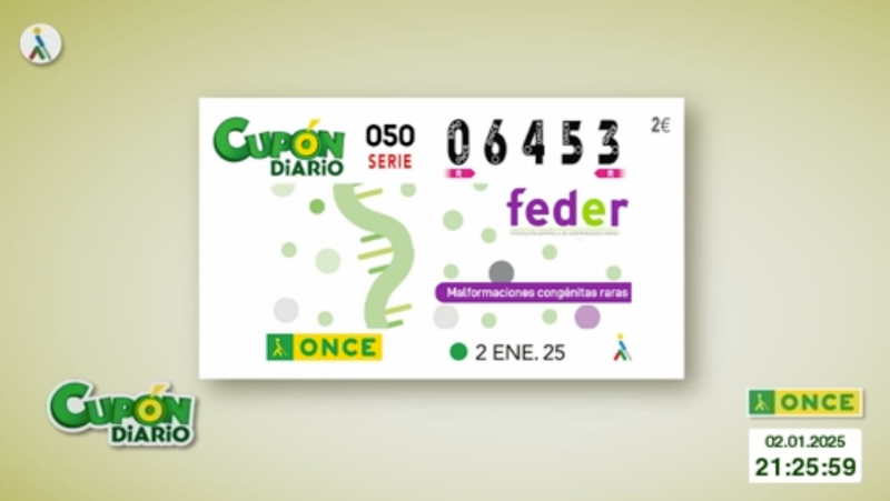 El sorteo del Cupón Diario de la ONCE correspondiente al jueves 2 de enero de 2025 tuvo como número premiado el 06453, con la serie correspondiente al 050. Todos los resultados al completo, tanto de hoy como de fechas anteriores, los podrás ver en la web de ESTADIO Deportivo, siendo recomendable su comprobación también en los canales oficiales de la ONCE.