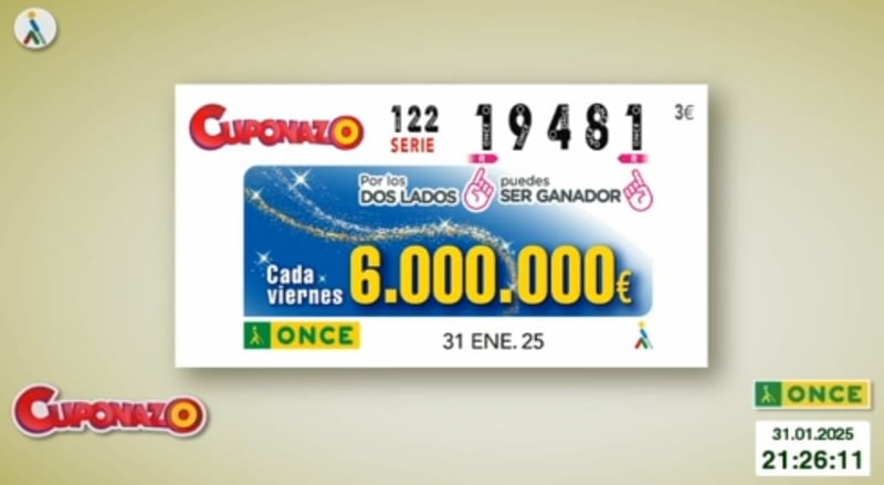 Resultado ONCE: comprobar número del cupón ganador de hoy 31 de enero de 2025