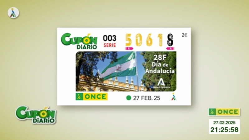 El sorteo del Cupón Diario de la ONCE correspondiente al jueves 27 de febrero de 2025 tuvo como número premiado el 50618, con la serie correspondiente al 003. Todos los resultados al completo, tanto de hoy como de fechas anteriores, los podrás ver en la web de ESTADIO Deportivo, siendo recomendable su comprobación también en los canales oficiales de la ONCE.