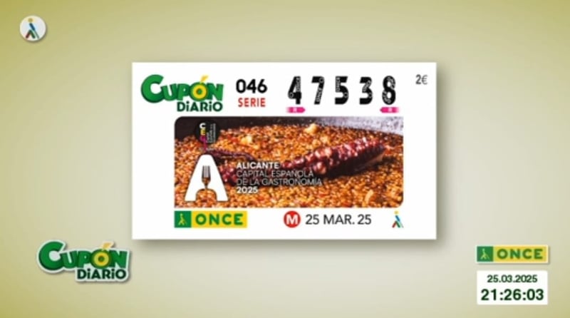 El sorteo del Cupón Diario de la ONCE correspondiente al martes 25 de marzo de 2025 tuvo como número premiado el 47.538, con la serie correspondiente al 046. Todos los resultados al completo, tanto de hoy como de fechas anteriores, los podrás ver en la web de ESTADIO Deportivo, siendo recomendable su comprobación también en los canales oficiales de la ONCE.