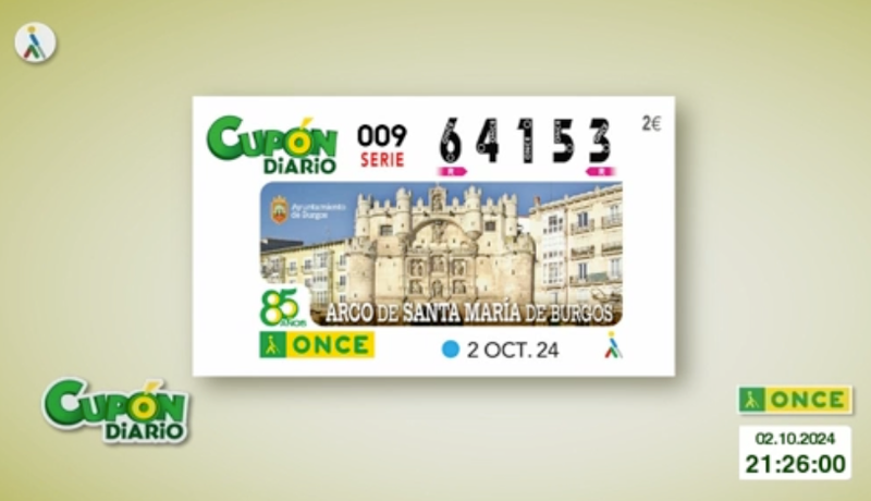 El sorteo del Cupón Diario de la ONCE correspondiente al miércoles 2 de octubre de 2024 tuvo como número premiado el 64153, con la serie correspondiente al 009. Todos los resultados al completo, tanto de este lunes como de fechas anteriores, los podrás ver en la web de ESTADIO Deportivo, siendo recomendable su comprobación también en los canales oficiales de la ONCE.