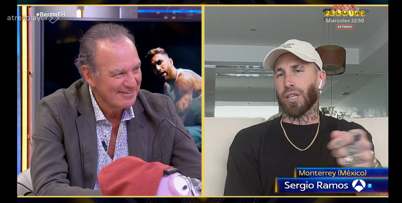 Tras la entrevista a Bertín, aunque sin despedir al cantante, Pablo Motos dio la bienvenida a Sergio Ramos, quien entró por videollamada desde Monterrey. "Muy bien, muy bien, la verdad que muy bien. Vamos primeros en el campeonato y la verdad que muy bien. Contentos", empezó diciendo Sergio Ramos cuando le preguntaron por cómo le iban las cosas con Rayados de Monterrey.