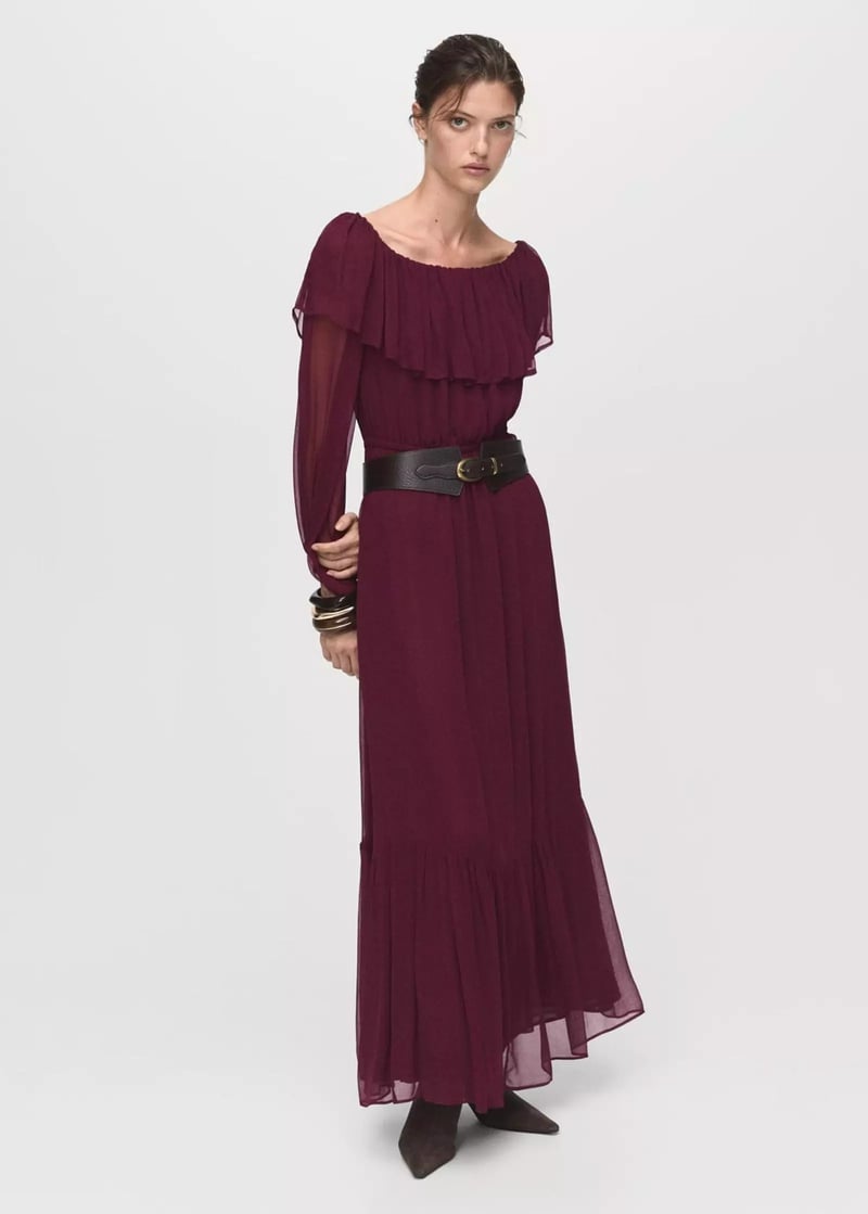 Por último, aquí os dejamos un vestido estilo boho de Mango, con volantes y escote de barco en el pecho, así como mangas estilo blusa que está causando sensación. Su precio es el más caro, 69,99 euros. (REF. 17035813)