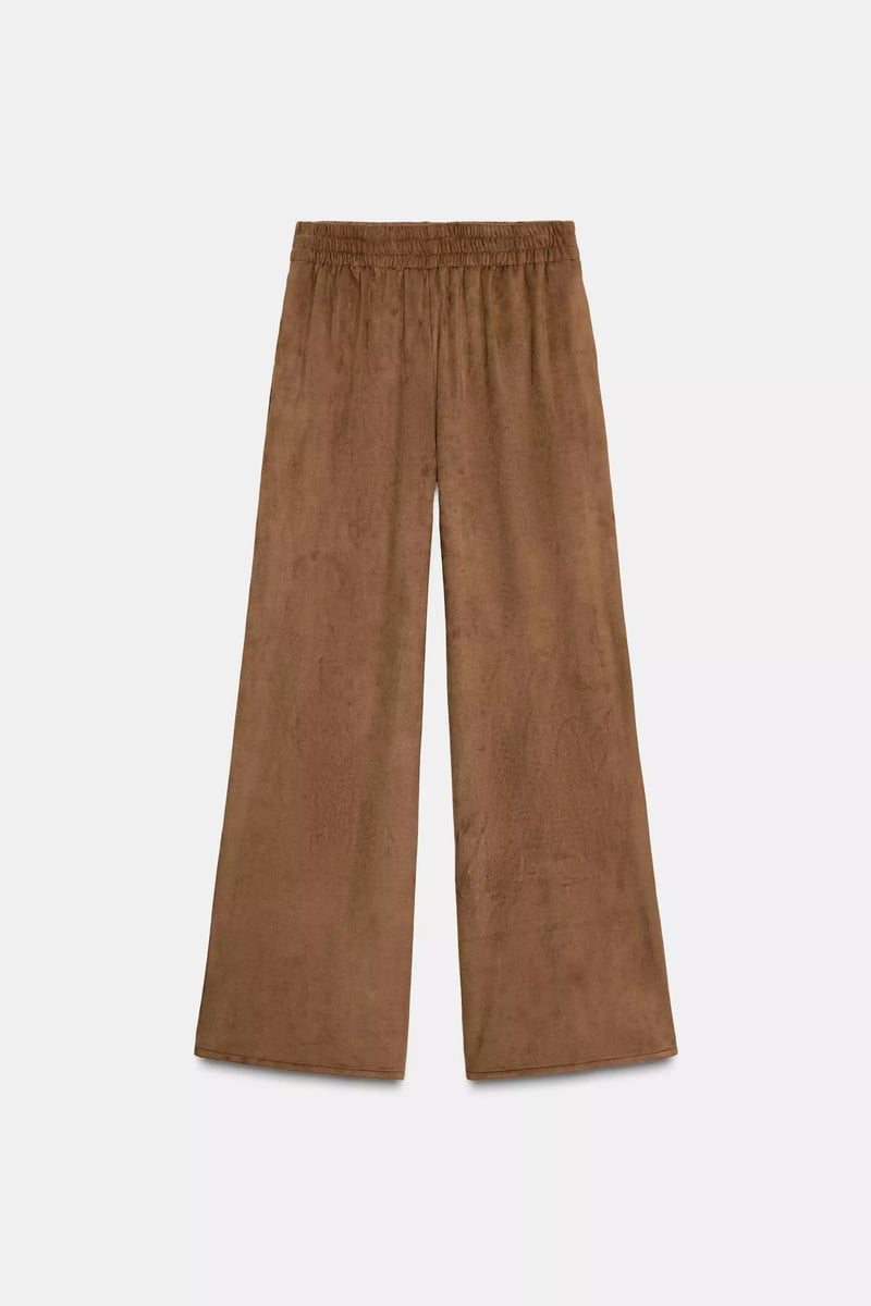 Al margen de los vestidos, y aprovechando que el ante también será tendencia este otoño, Zara tiene varios pantalones anchos y con diseños parecidos que son perfectos. Su cintura elástica los hace muy cómodos y también están dentro de la grama cromática de moda esta temporada. Su precio asciende a los 29.95 euros. (REF. 2157/140/730)