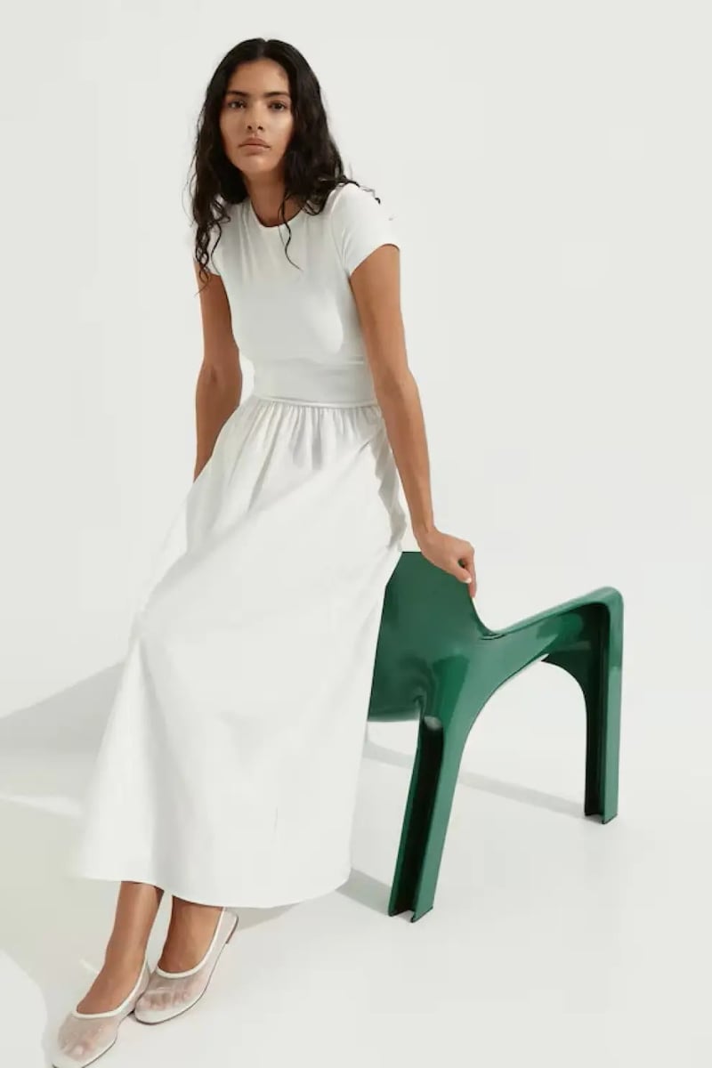Dentro de los clásicos e imperdibles del armario debe estar este maxi vestido de manga corta disponible en H&M. Con un tejido de algodón, escote redondo y una falda con volumen, se trata de una muy buena oportunidad. Lo hay disponible en varios colores y el precio no supera los 20 euros. (REF. 1295352001)