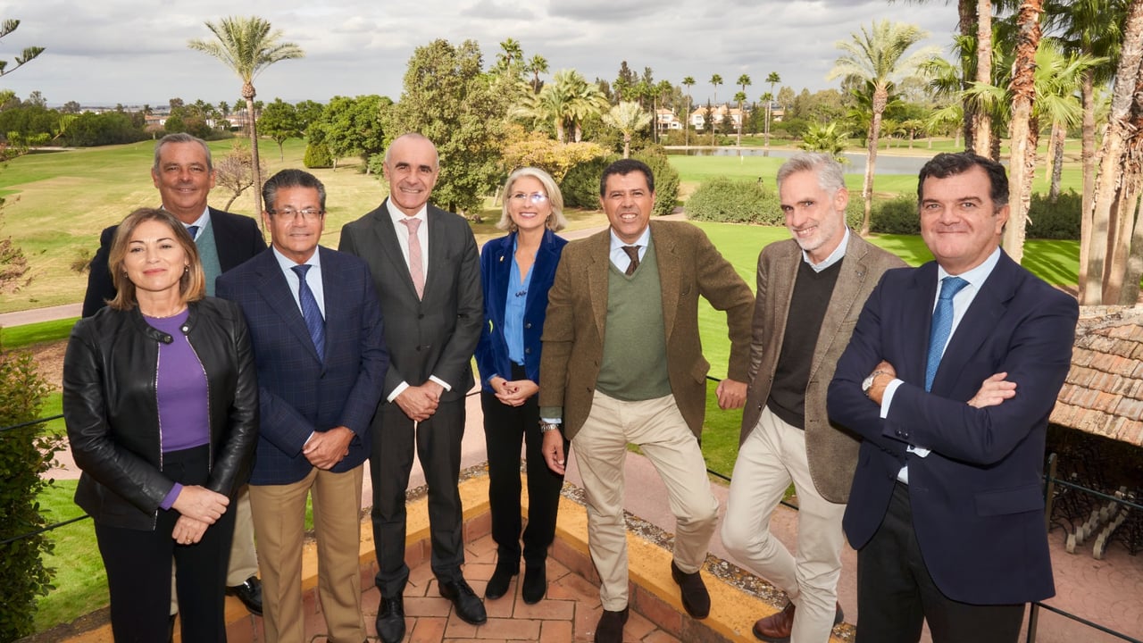 El alcalde de Sevilla, Antonio Muñoz, posa con varios dirigentes del Real Club Sevilla Golf.RCSG