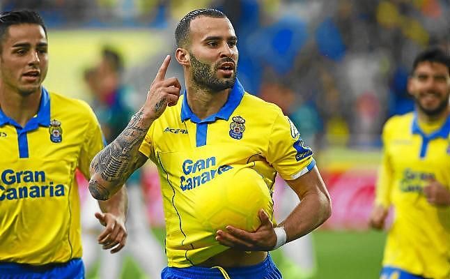 Jesé celebra un gol durante su cesión en Las Palmas.Óscar Murillo