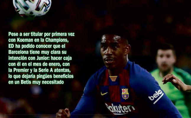 Pese a ser titular por primera vez con Koeman en la Champions, ED ha podido conocer que el Barcelona tiene muy clara su intención con Junior: hacer caja con él en el mes de enero, con la Premier y la Serie A atentas, lo que dejaría pingües beneficios en un Betis muy necesitado