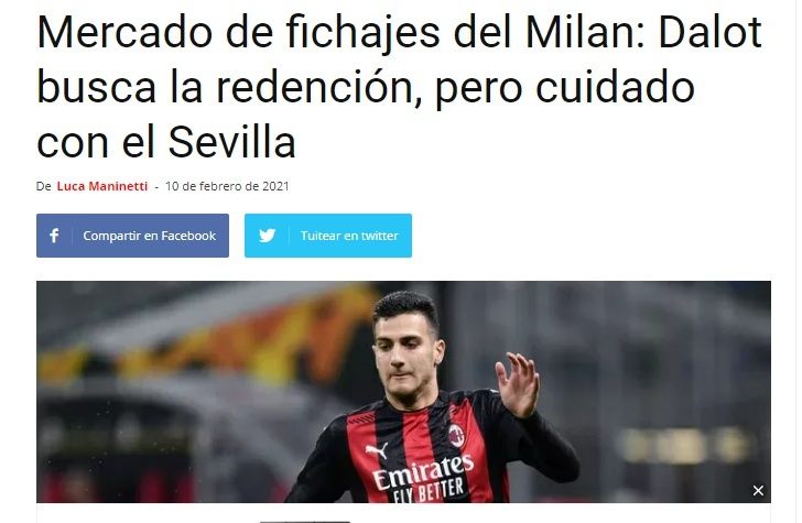 Y en el AC Milan ven complicado poder quedarse en propiedad con el zaguero portugués, por quien el Manchester United pide 20 millones de euros. Y no es la única dificultad para que siga el luso en la Serie A más allá del verano, sino que en Italia aseguran que existe otro inconveniente: el fuerte interés del Sevilla FC.