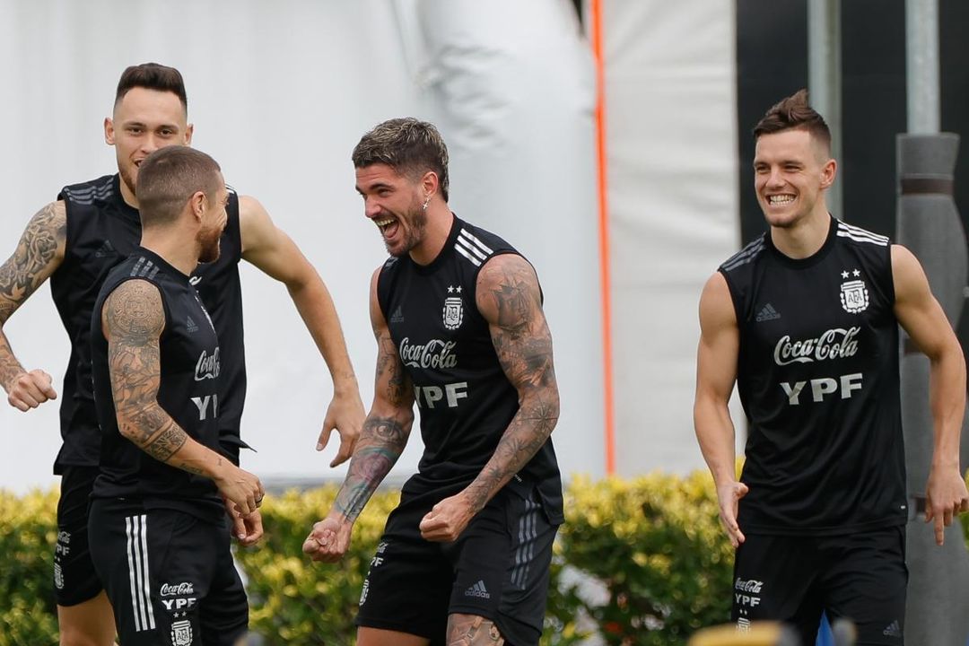 Ocampos, Papu Gómez, De Paul y Lo Celso, durante esta concentración con Argentina.Villa Gómez