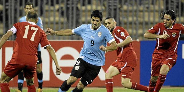 Uruguay ha puesto pie y medio en el Mundial de Brasil del año que viene después de imponerse a Jordania en Amman por un contundente 0-5 en la ida de la repesca intercontinental, en un partido que dejó patente la diferencia entre ambos combinados. No le hizo falta un partido deslumbrante a la cuarta clasificada del pasado Mundial de Sudáfrica y le bastó su acierto en la primera mitad para acabar prácticamente con las opciones de los jordanos, muy inocentes, sobre todo atrás, y que apenas inquietaron a su rival, salvo en algún momento de la segunda mitad.