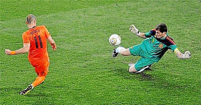 En la retina de muchos españoles se quedó grabado aquel mano a mano entre Robben y Casillas con empate a cero todavía en el marcador de aquella final del Mundial de Sudáfrica. Entonces el pie de Iker desvió el chut del holandés y el final de la historia ya lo conocen.