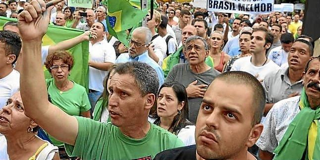 Los manifestantes bloquearon la transitada Avenida Faría Lima y comenzaron a desplazarse con destino al puente "Otavio Frías", uno de los principales referentes turísticos de la ciudad y ubicado frente a los estudios de la red de televisión Globo en Sao Paulo.