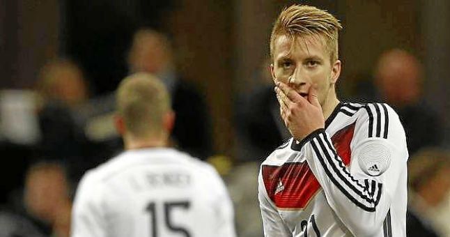 El mediapunta del Borussia de Dortmund y de la selección alemana, Marco Reus, no irá al Mundial de Brasil después de la lesión que sufrió ayer en el partido que enfrentó a Alemania con Armenia y será sustituido por el defensa de la Sampdoria Shkodran Mustafi. Así lo confirmó hoy a través de su página web la Federación de Fútbol Alemana, después de que Reus se produjese ayer una fisura parcial en su tobillo izquierdo al chocar en el minuto 44 con el jugador armenio Artur Yedigaryan, tras lo que tuvo que ser sustituido por el atacante del Arsenal Lukas Podolski. La lesión mantendrá al jugador alemán apartado de los terrenos de juego durante varias semanas y por tanto lo incapacitaba para participar con la selección germana en Brasil.