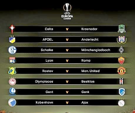 El Manchester United de Jose Mourinho, uno de los grandes favoritos al título de la Liga Europa 2016/17, se enfrentará al Rostov ruso en los octavos de final, en los que habrá dos duelos fratricidas, el Schalke-Borussia Mönchengladbach y el Gante-Genk, y el choque Lyon-Roma como grandes atractivos.