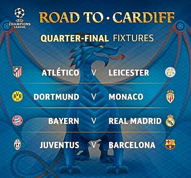 El Real Madrid se medirá con el Bayern de Múnich en cuartos de final de la Liga de Campeones, mientras que el Atlético lo hará contra el Leicester City y el FC Barcelona contra la Juventus, tal y como deparó el sorteo celebrado este jueves en la sede de la UEFA en Nyon (Suiza).