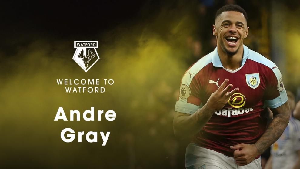 El delantero inglés Andre Gray se ha convertido este miércoles de forma oficial en el séptimo refuerzo del Watford de cara a la temporada 2017/2018, que arranca el próximo viernes.