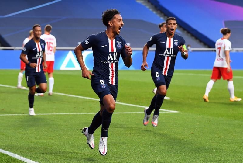 Lisboa, 18 ago (EFE).- Los goles del brasileño Marquinhos en el minuto 13 y del argentino Ángel Di María en el 42 de las semifinales de la Liga de Campeones de fútbol de Lisboa lanzan al París Saint Germain al descanso (0-2) frente al Leipzig, sometido por el conjunto francés, su velocidad y su presión durante toda la primera parte.