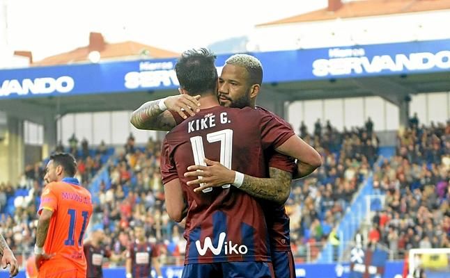 Pero el equipo eibarrés siguió a lo suyo, atacando y buscando aumentar su renta. Y lo logró porque Kike García, a pase de Bebé tras robar un balón, empalmó con el pie y, sin querer, el defensa canario Aythami Artiles envió el balón a la red para establecer el 2-0.