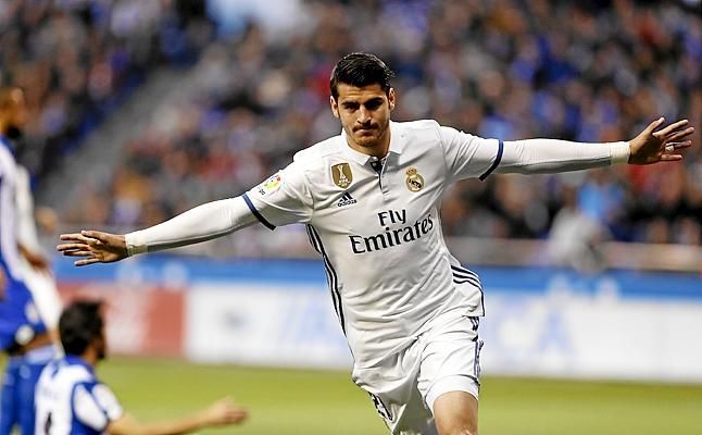 Cincuenta segundos tardó el Real Madrid en empezar a dejar atrás la derrota en el clásico. Tras una pérdida de los locales en la salida del balón, los de Zinedine Zidane, que solo mantuvo en el once a Marcelo y Nacho, dieron el primer golpe en una contra que Morata, a pase de Isco, resolvió ante Germán Lux.