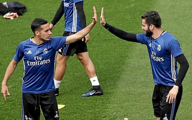 Nacho y Lucas Vázquez en el entrenamiento del Madrid.R.S.