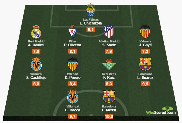 Las asistencias de Luis Suárez, los 'hat-tricks' de Messi y Bacca, las paradas de Chichizola... Consulta el mejor once de la jornada 35 de LaLiga, basado en las estadísticas de Who Scored, en nuestra galería.