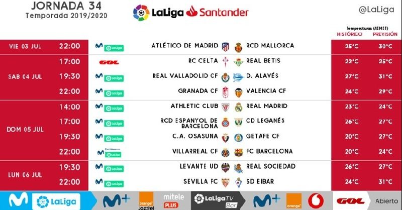 Ese cambio también se vivirá en los duelos por el liderato de la LaLiga, ya que en esta jornada el Madrid jugará después que el Barça por primera vez desde que se retomó el campeonato. Los blancos se habían quejado de tener que jugar siempre con la presión de conocer qué había hecho su gran rival.