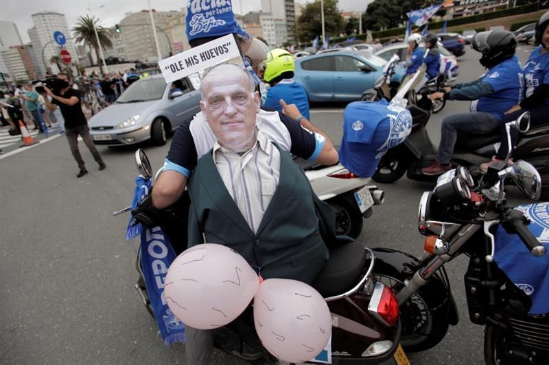 A Coruña, 31 jul (EFE).- Los aficionados del Deportivo salieron a la calle este viernes, pero en sus vehículos, en defensa de su club después de que se suspendiera su partido en la última jornada de LaLiga SmartBank, que tenía que haberse disputado en horario unificado, y, en consecuencia, perdiera la categoría por los resultados de otros equipos que le precedían.