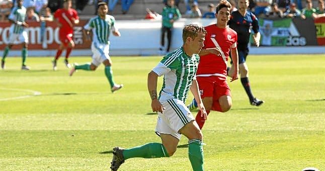 El choque estaba muy igualado, lleno de intensidad y las ocasiones comenzaban a llegar... También lo intentó Ivi pero su chut cruzado se marchó cerca del poste de Pedro. Poco a poco, el Sevilla Atlético iba llevando el partido a su terreno mientras el Betis B buscaba salir con peligro al contragolpe. Y estuvo cerca de sorprender en uno de ellos Juanma.