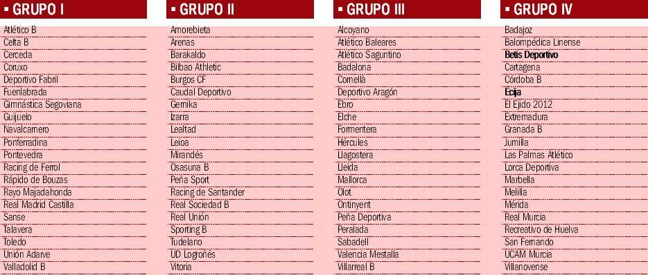 La comisión de clubes de Segunda B aprobó en el día de ayer la composición de los cuatro grupos para la temporada 17/18, una propuesta que la Real Federación Española de Fútbol deberá ratificar el próximo día 20 en su Asamblea General, lo que suele ser habitual. Así pues, se puede decir que los dos equipos sevillanos que hay en la Categoría de Bronce, Betis Deportivo y Écija, se verán las caras el curso venidero con el resto de equipos andaluces, más extremeños, murcianos, Melilla y Las Palmas Atlético.