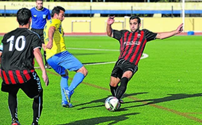 En la imagen, el mediocentro Lara (derecha) sale al paso de Joaquín en un lance del San Juan-Cabecense de la temporada 15/16.Carlos Vizcaíno
