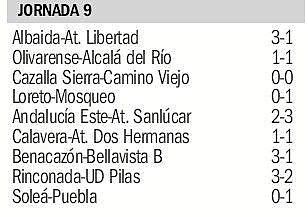 El Andalucía Este, por su parte, perdió ante el Atlético Sanlúcar (2-3), en un choque en el que los sanluqueños remontaron el tanto de Ángel Guerrero. Así, el Andalucía Este cae de la segunda a la tercera plaza. Además, el Alcalá del Río no pasó del empate ante el Olivarense (1-1). De esta forma, sólo cuatro puntos separan a los siete primeros clasificados.