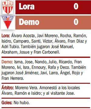 Ni Lora ni Demo pudieron acertar con la portería contraria. El Lora lo intentó con más vehemencia, pero Isma se mostró seguro, sumando un punto que sabe mejor al Demo.