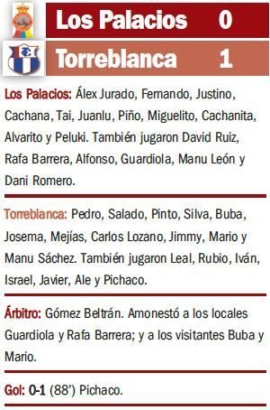 El Torreblanca salió victorioso del siempre complicado San Sebastián, en un envite donde los torrealbenses neutralizaron a Los Palacios y fueron madurando cocinando el gol poco a poco. Éste llegó tras una indecisión en defensa que aprovechó Pichaco.
