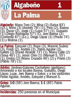 El Algabeño no pasó del empate ante La Palma en un partido donde costó que llegara el gol, pero donde todo se fue al traste en los minutos finales. El empate llegó tras un córner muy protestado por los de Diego Tristán, que dejó a los algabeños con cara de pocos amigos.