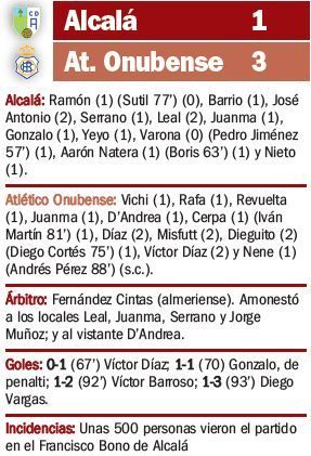 Alcalá 1-3 At. Onubense: Derrota en el peor momento