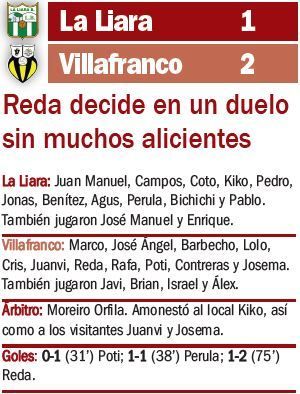 La Liara 1-2 Villafranco: Reda decide en un duelo sin muchos alicientes