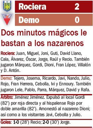 Rociera 2-0 Demo: Dos minutos mágicos le bastan a los nazarenos