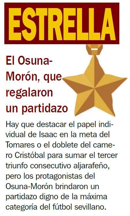 Los rojillos realizaron un gran encuentro, marchándose al descanso ya con 2-0 (David Benítez y Palop), aumentando la cuenta Limones en el segundo acto. Los visitantes se pusieron 3-2 y Raya sentenció. Con este triunfo, Osuna, UD Morón CF y Bellavista empatan a trece puntos en lo más alto, pero ursaonenses y capitalinos lideran la tabla al tener más goles a favor, ya que los tres conjuntos cuentan con una diferencia de goles de +6.