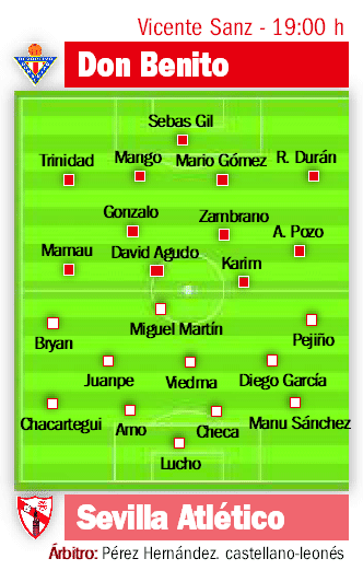 Tras sacar un positivo empate en casa ante el Recreativo Granada, que llegaba como líder, el Sevilla Atlético se enfrenta a otro duro reto, al visitar el feudo de un Don Benito cuyo estadio nadie ha sido capaz de asaltar. Los extremeños han sumado dos victorias y un empate en el Vicente Sanz, algo que pondrá a prueba la mejoría mostrada por los de Luci en las últimas jornadas.Después de sumar tres empates consecutivos ante el Talavera, la Balompédica Linense y el filial granadinista, el conjunto nervionense tiene la necesidad de reencontrarse con la victoria para abandonar los puestos de descenso, coger confianza y alejar a un rival directo como el Don Benito, que ahora cuenta con un punto más que los sevillistas en la tabla.