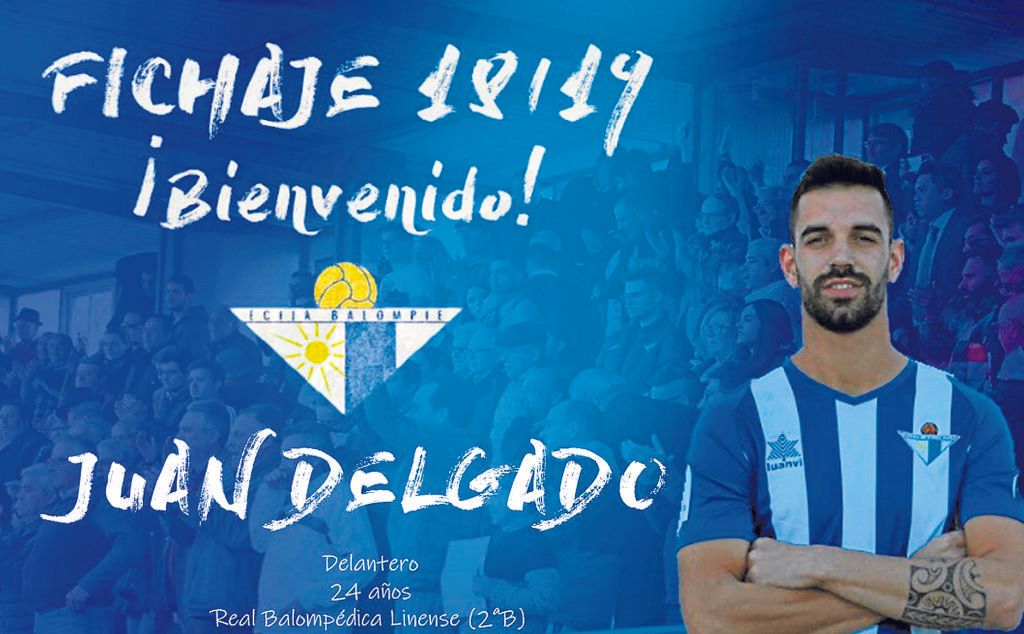 Por un lado, el club astigitano anunció el fichaje de Juan Delgado. El delantero ecijano regresa así al club del San Pablo tras su breve aventura en la Balompédica Linense, club por el que fichó el pasado verano. El atacante esgrimió razones personales para desvincularse del equipo campogibraltareño, apalabrando su fichaje por el Écija.