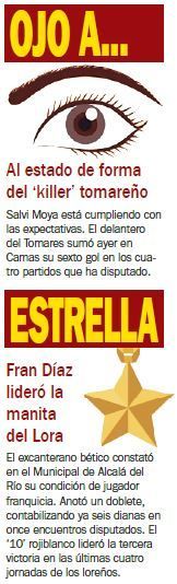 Once jornadas suma ya el Tomares, tantas como se llevan de campeonato en Primera Andaluza, sin conocer la derrota, y mandando una semana más, aunque su diferencia con el segundo se ha reducido. Ahora, es el Osuna quien ocupa el segundo escalón, a cuatro puntos de los aljarafeños, gracias a su goleada (3-0) frente al colista, la segunda victoria consecutiva en casa. En la zona noble hay que destacar el encuentro disputado en el Alameda entre el UD Morón CF y la Rociera. Los nazarenos cayeron en un trepidante choque, en el que pese a adelantarse por 0-2, los aruncitanos no dieron el partido por perdido, remontando con un gol de Rubén Díaz en el 87’. Con este marcador, los rojiblancos ascienden al tercer puesto y la Rociera abandona su plaza en los ‘play off’, estatus que pasa esta semana a manos de un Bellavista que gracias al 3-1 que le endosó al Cerro rompió su mala racha de tres derrotas seguidas.