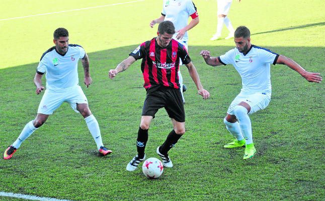 El polivalente atacante Pulet, con el balón controlado ante el Ceuta, apunta al Gerena.Carlos Vizcaíno