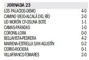 Entre los aspirantes a entrar en ‘play off’, además del triunfo del Villafranco, hay que destacar a la Estrella de San Agustín, que vuelve a ganar, tras cuatro jornadas sin hacerlo, al vencer en el feudo del Mairena. Por su parte, el Camas siguió con su buena dinámica de las últimas jornadas al superar por la mínima al Paradas.