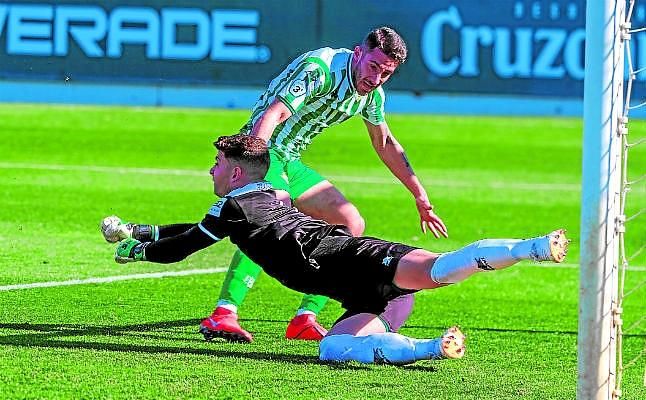 El portero ecijano Fernando despeja ante el bético Irizo.C.V.