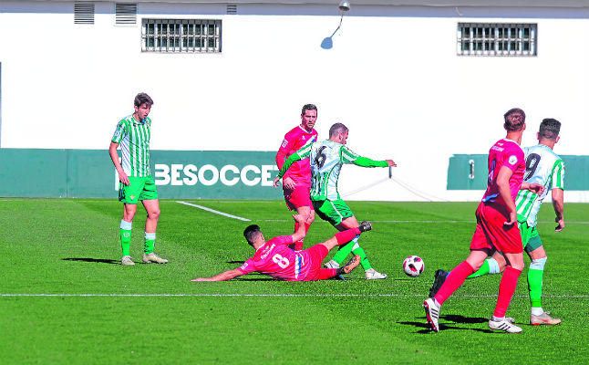 Bubu (centro), en un lance ante el Betis Deportivo disputado en la presente temporada.R. S.