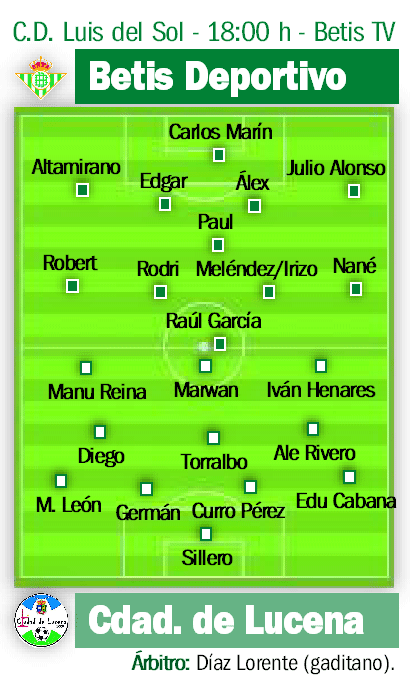 José Juan Romero, míster del filial bético, recupera a los otrora sancionados Robert, Paul y Rodri, los tres llamados a ocupar un puesto en el once, mientras que el juvenil Calderón (al que acompañarán en la citación Ismael, Álex y Baena, igualmente del División de Honor) se ha restablecido de sus molestias y cumplido castigo.