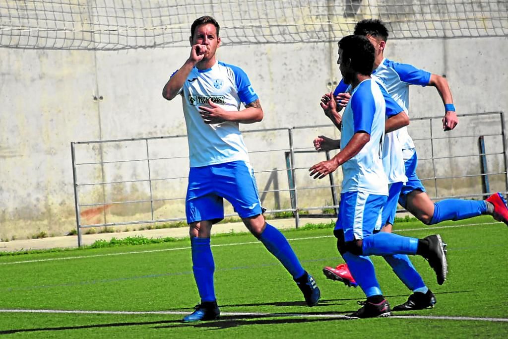 El alcalareño Juanma celebra un gol dedicándoselo a su hijo Enzo.C. Vizcaíno